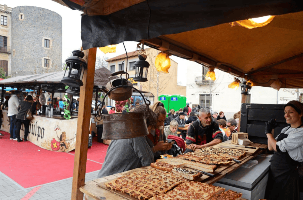 A continuación, nos desplazaremos hasta Hostalric dónde se celebra la Gran Feria Medieval. Es un evento que pretende conmemorar el esplendor del pasado medieval del municipio, transformando las calles llenándolas de personajes y actividades de la época. Como cada año, durante el viernes, sábado y domingo de Semana Santa, el municipio de Hostalric, se convierte en una villa medieval con un gran mercado de productos artesanales y naturales donde también se pueden ver demostraciones de oficios de tradición medieval y actividades propias de la época, tales como música y danzas medievales, cetrería o espectáculos itinerantes. De este modo, la localidad revive la época en que era el núcleo central del vizcondado de Cabrera.