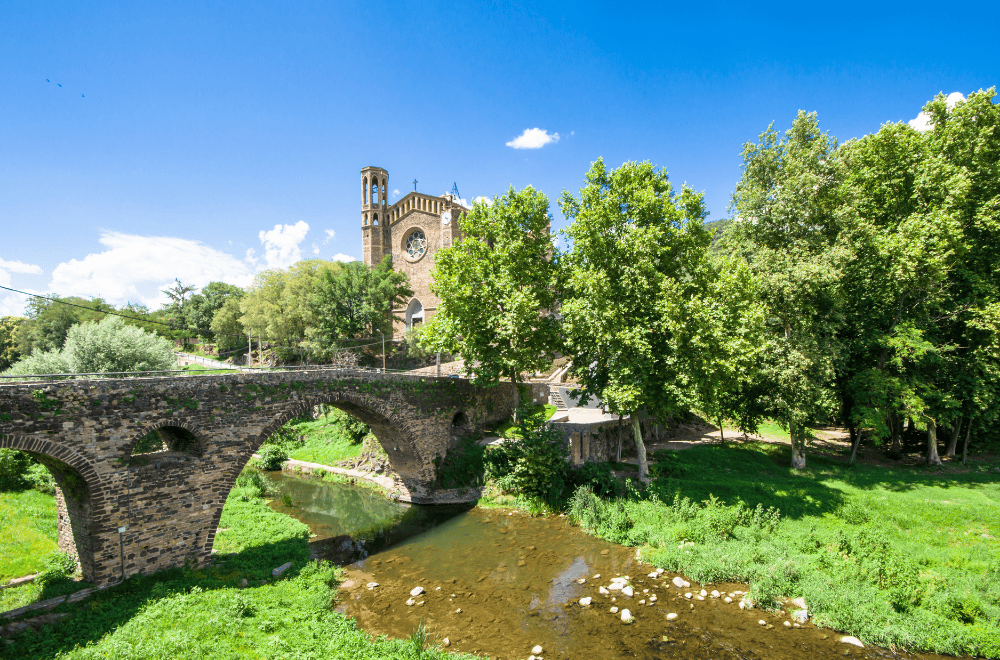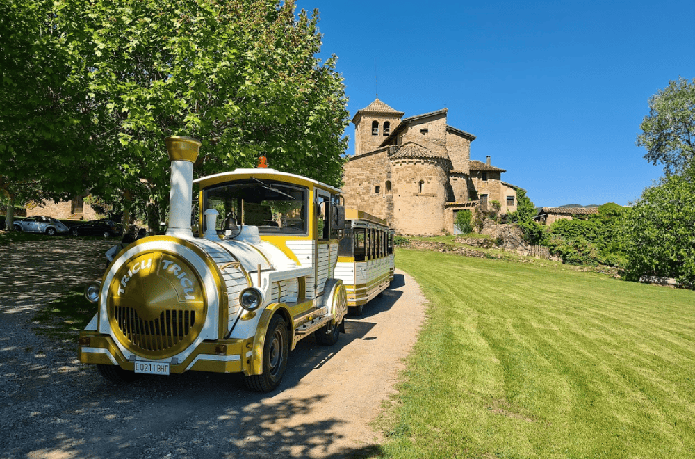 Continuaremos nuestro recorrido hasta llegar a la población de Sant Joan les Fonts, uno de los pueblos más dinámicos de la comarca y el segundo con más población de la Garrotxa. Pertenece al parque natural de la zona volcánica. Aquí cogeremos nuestro trenecito Tricu Tricu (incluido) e iniciaremos la ruta que nos llevará primeramente a visitar la iglesia románica de Sant Joan les Fonts, un monasterio benedictino de la época medieval que data del s.XII. Seguidamente nos adentraremos en el casco antiguo siguiendo la ruta de las fuentes, con una bonita panorámica del puente medieval y la majestuosa iglesia parroquial. Continuaremos dirección al volcán de la Canya y la ruta de las 3 coladas de lava, donde haremos una parada para visitarlas, así como también el salto de agua del molí fondo y la pedrera de Basalt.